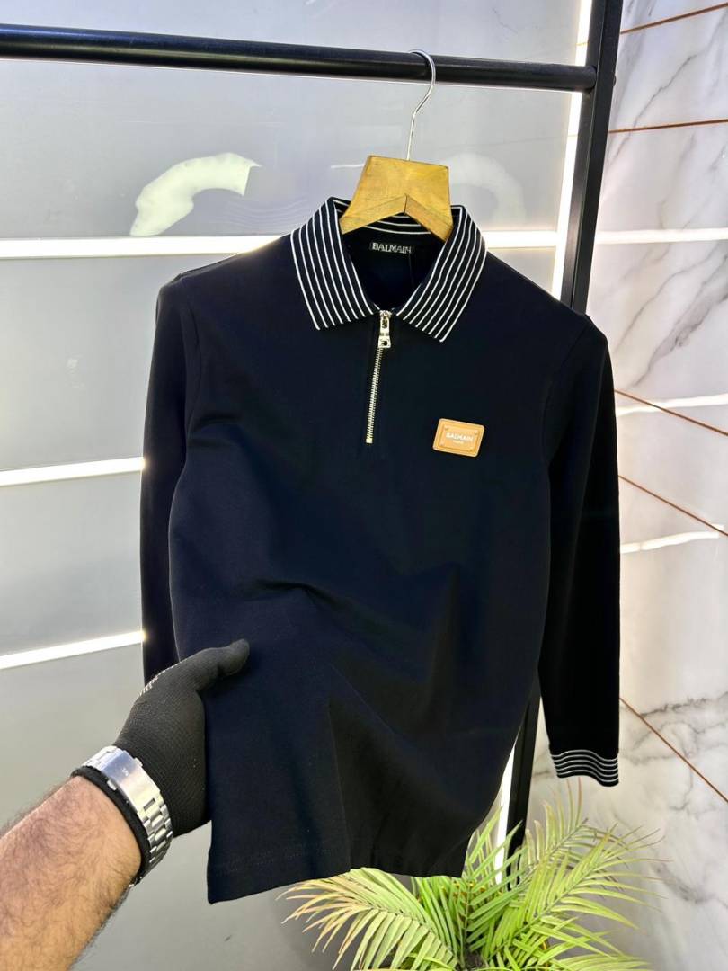 Balmai n Paris Black Polo Neck Full Sleeves Premium Collar T-shirt F3028-B1