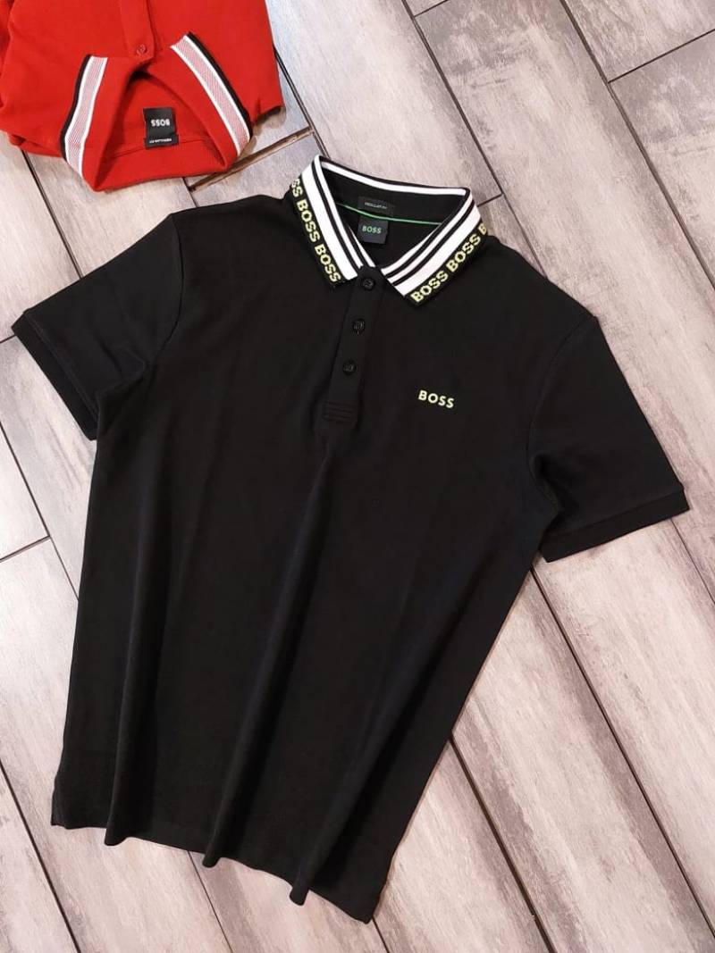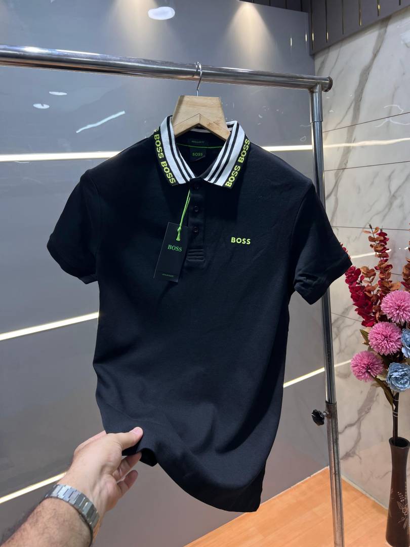 Hugo Bos s Black Premium 240 gsm interlock cotton fabric Polo Tshirt with Collar Design and Emboss Logo 3176
