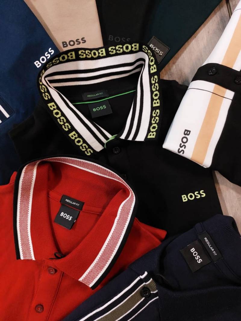 Hugo Bos s Inkblue Premium 240 gsm interlock cotton fabric Polo Tshirt with Collar Design and Emboss Logo 3177