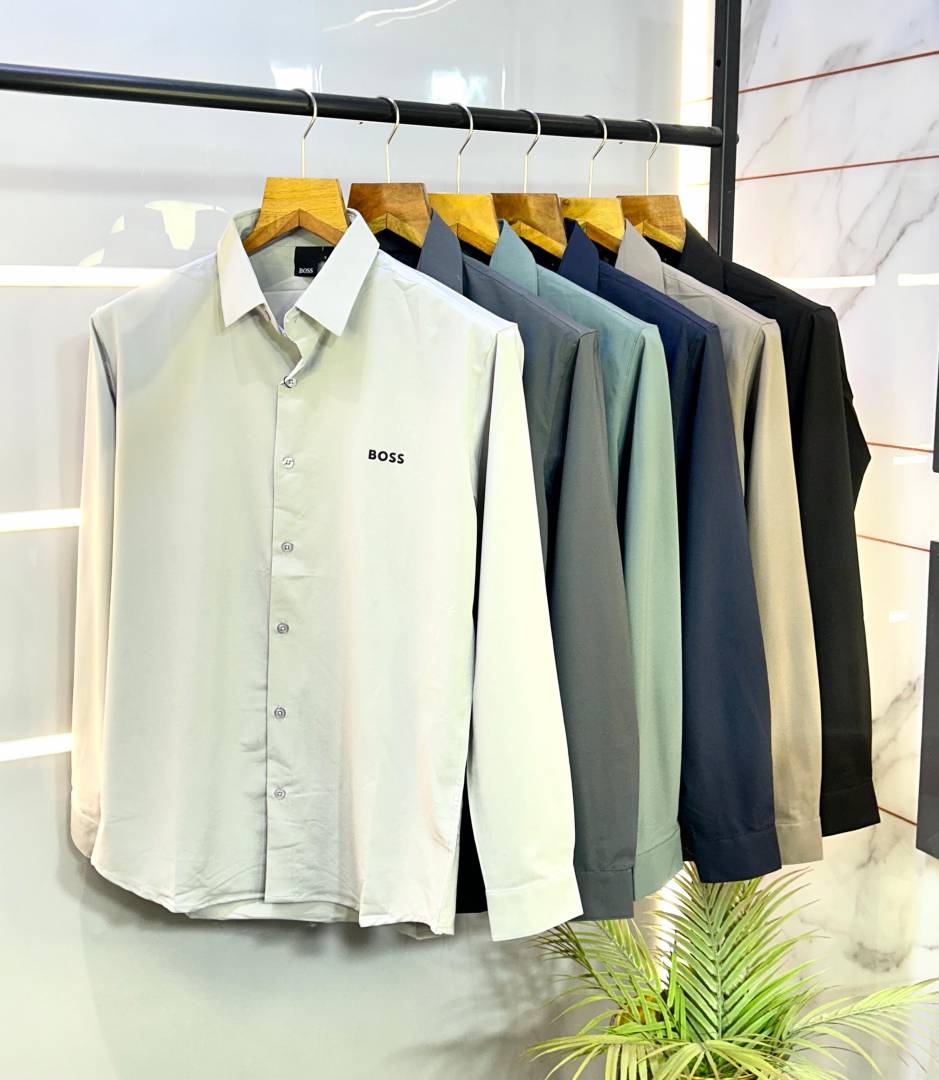 Hugo Bos s Black Premium 4way Stretchable Japanes Lycra Fabric Wrinkle Free Shirt with Brand Box 2444