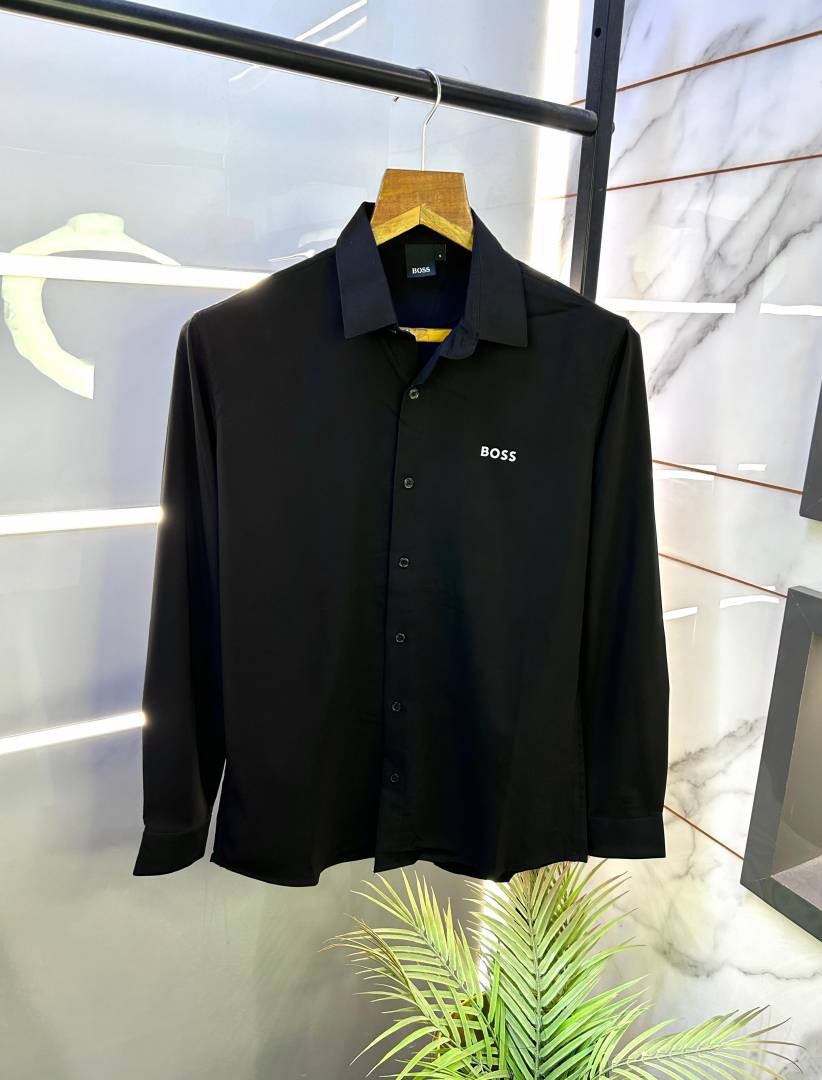 Hugo Bos s Black Premium 4way Stretchable Japanes Lycra Fabric Wrinkle Free Shirt with Brand Box 2444