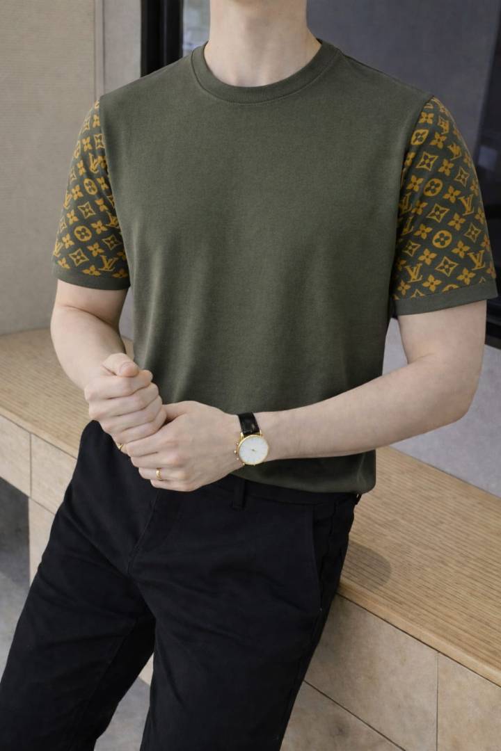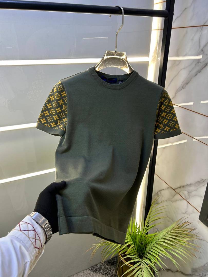 Loui s Vuitton Imported Green knitted Super Premium Round Neck T-shirt F3516-GR