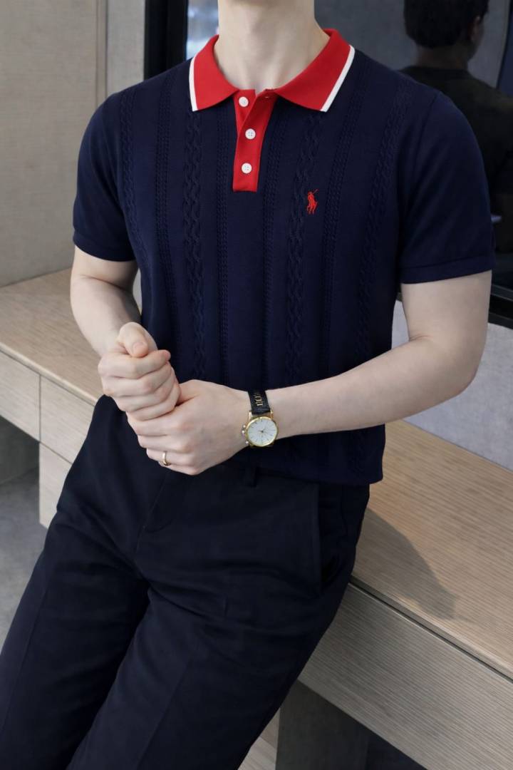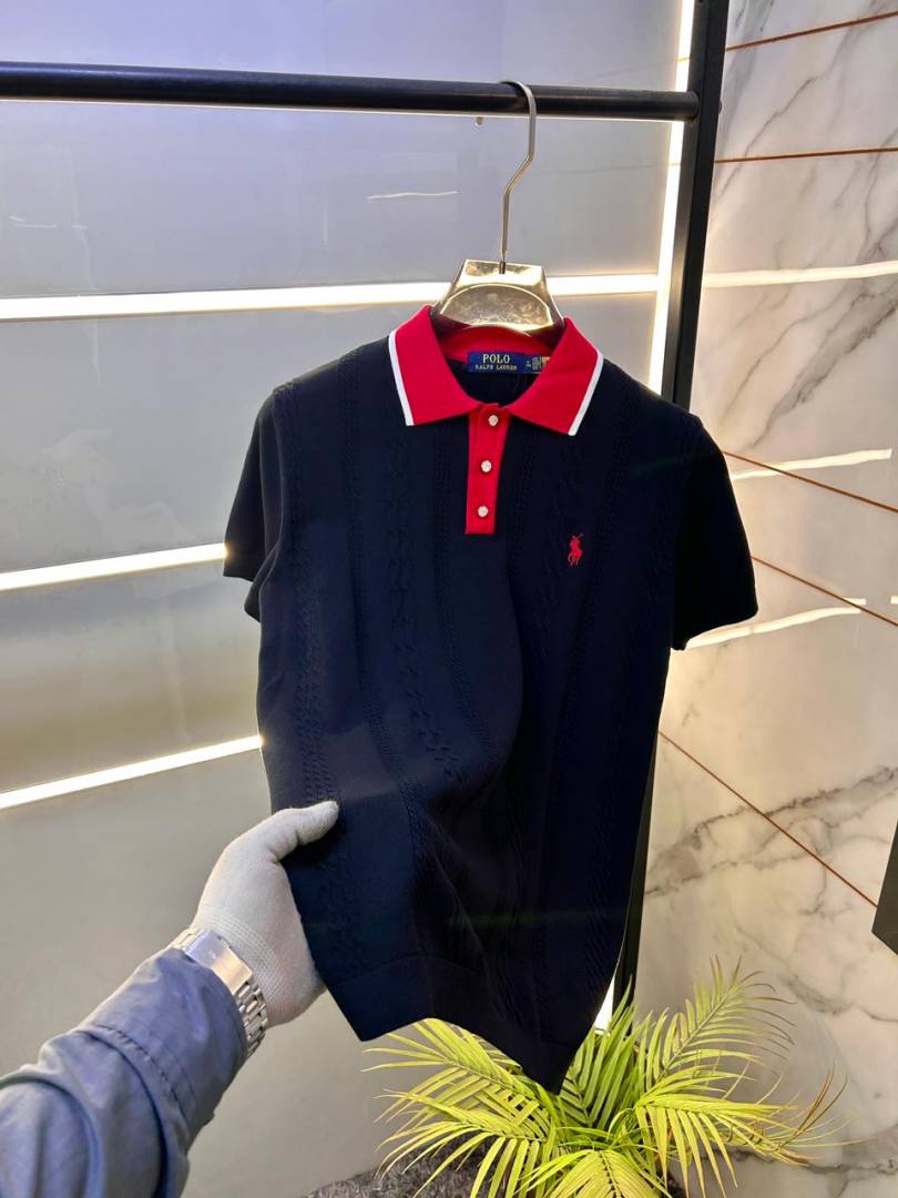 Ralp h Lauren Polo Imported knitted Navy Super Premium Collar Neck T-shirt F3510-NY
